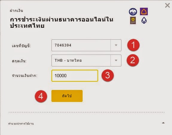 | ขั้นตอนการฝากเงินเข้าบัญชี EXNESS |